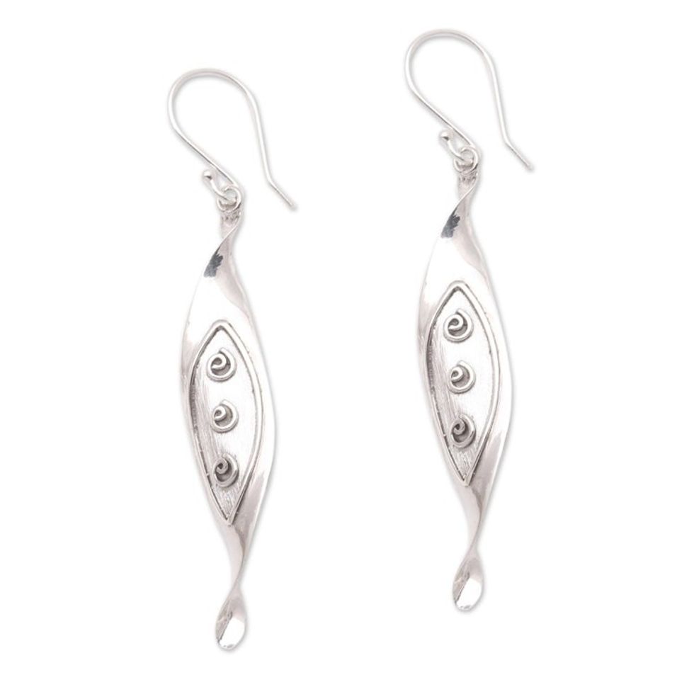 Swirl Pattern Sterling Silver Dangle Earrings from Bali 'Leafy Shapes' Item ID: 2671737137