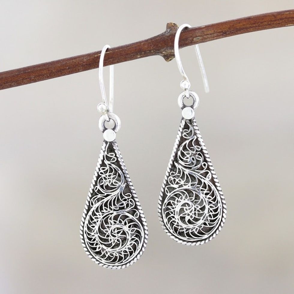Swirl Pattern Sterling Silver Drop Dangle Earrings 'Intricate Tears' Item ID: 2671789685