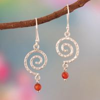Swirl-Shaped Carnelian and Sterling Silver Dangle Earrings 'Swirling Textures' Item ID: 2671698100