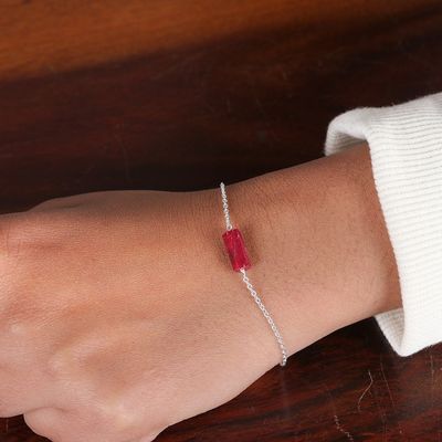 'Fascinating Red,' bracelet as pictured with deep, red gemstones. Well made. Fites wrist measurement of 6.25". Happy with purchase.