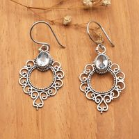 Swirling Sterling Silver Dangle Earrings with Blue Topaz 'Loyal Morning Flowers' Item ID: 2671763426