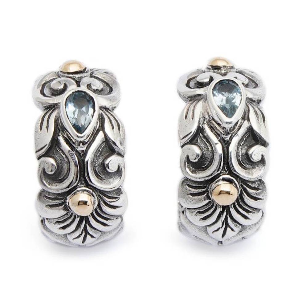Sylvan-Themed Gold-Accented Blue Topaz Half-Hoop Earrings 'Peaceful Eden' Item ID: 2676661208