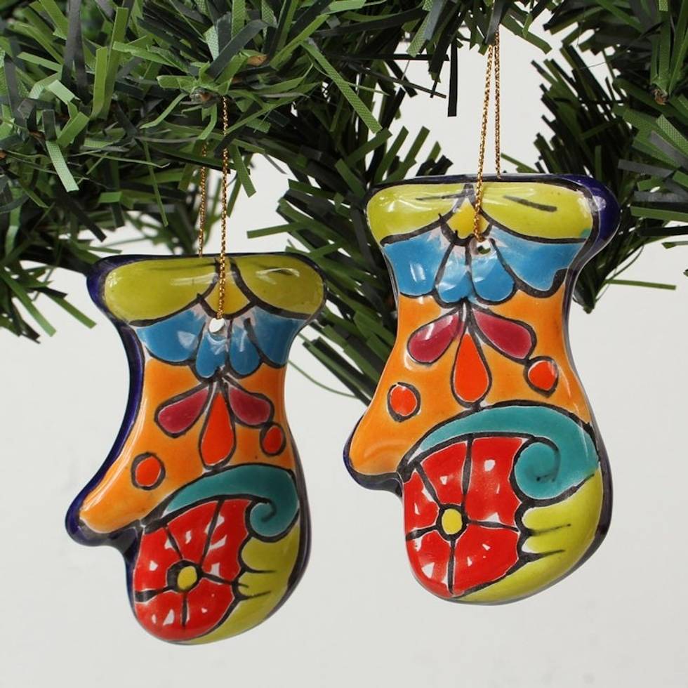 Talavera Ceramic Mitten Ornaments from Mexico Pair 'Talavera Mittens' Item ID: 2669897676