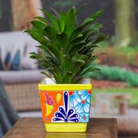 Talavera Chartreuse Ceramic Flower Pot Handcrafted in Mexico 'Hacienda Scenes in Chartreuse' Item ID: 2671639190
