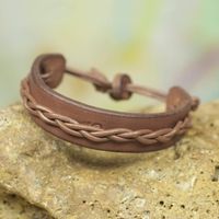 Tan Colored Leather Wristband Bracelet for Men 'Simple Twist in Tan' Item ID: 2671800901