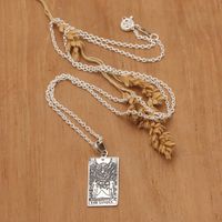 "The Tarot card The Lovers announces a future of romance and grace, just as lovely as the connection between two souls. Inspired by the mystic and enigmatic figures that compose this divination game, Balinese artisan Gede Agus Mahardika uses sterling silver to create this necklace, whose pendant takes the shape of the famous card of the Tarot's major arcana."