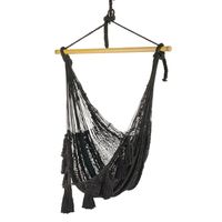 Tasseled Black Cotton Rope Mayan Hammock Swing 'Ocean Seat in Black' Item ID: 2671808223