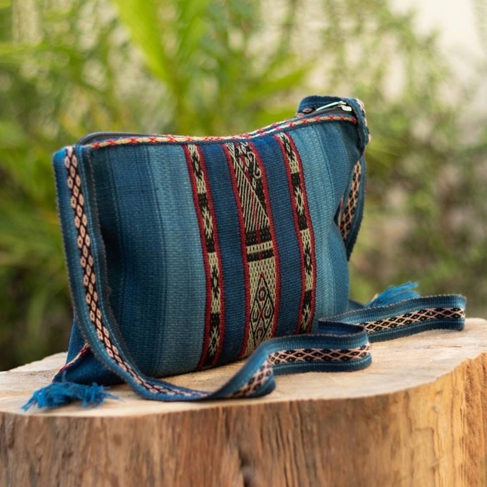 Tasseled Blue Alpaca Shoulder Bag 'Cusco Skies' Item ID: 2671401707