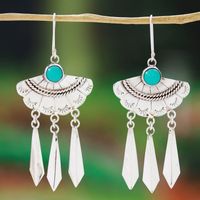 Taxco 925 Silver Turquoise Fan-Shaped Chandelier Earrings 'Fan Delight' Item ID: 2671807860