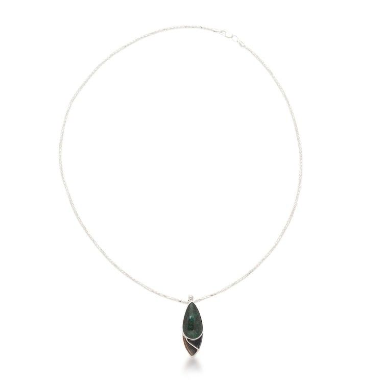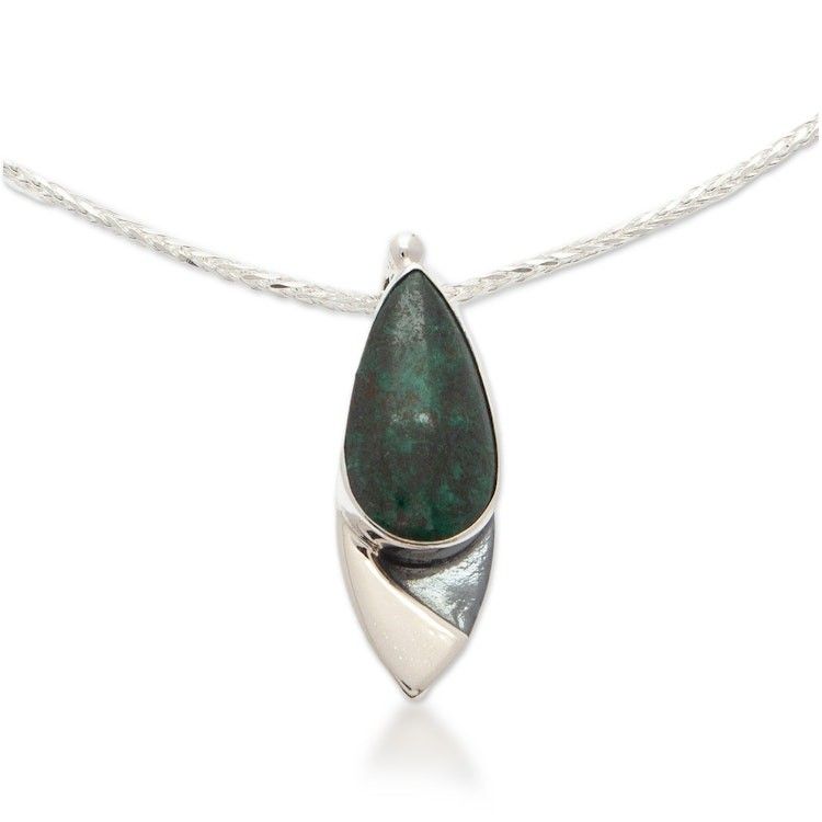 Taxco 950 Silver Modern Pendant Necklace with Chrysocolla 'Ocean's Edge' Item ID: 2671809116