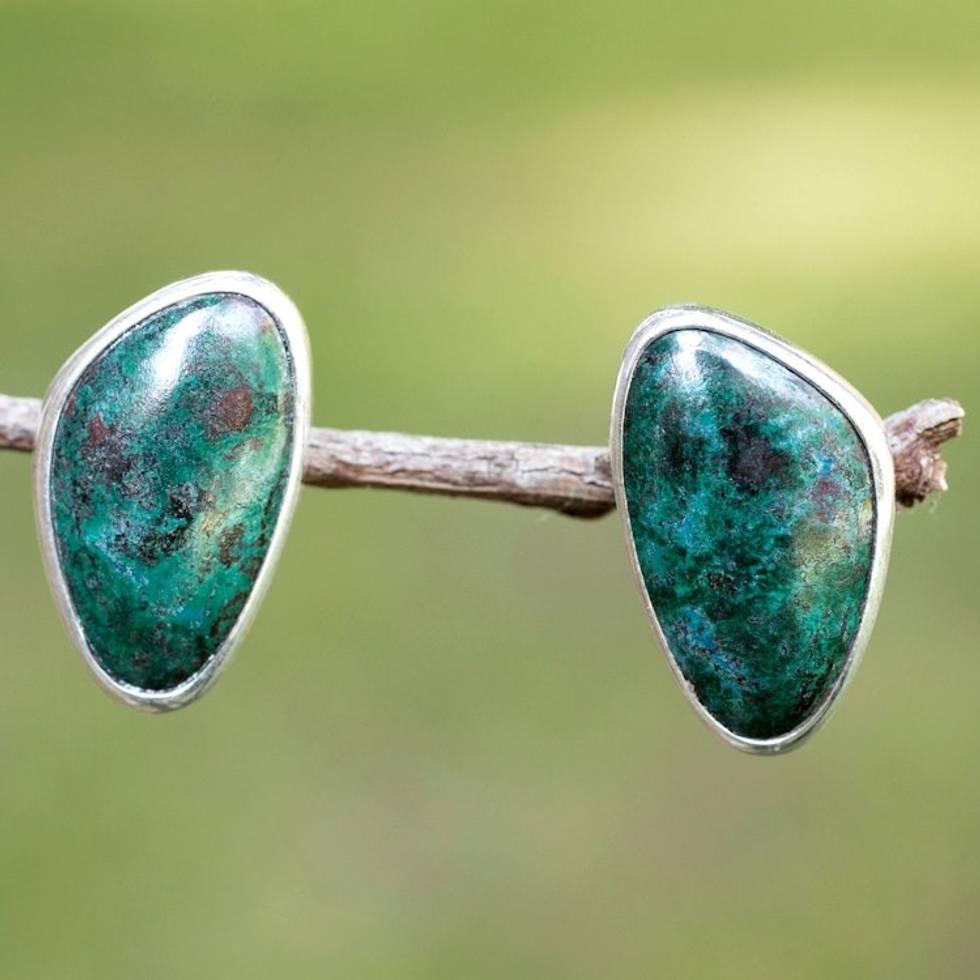 Taxco Fine Silver and Chrysocolla Earrings 'Allure' Item ID: 2671808758