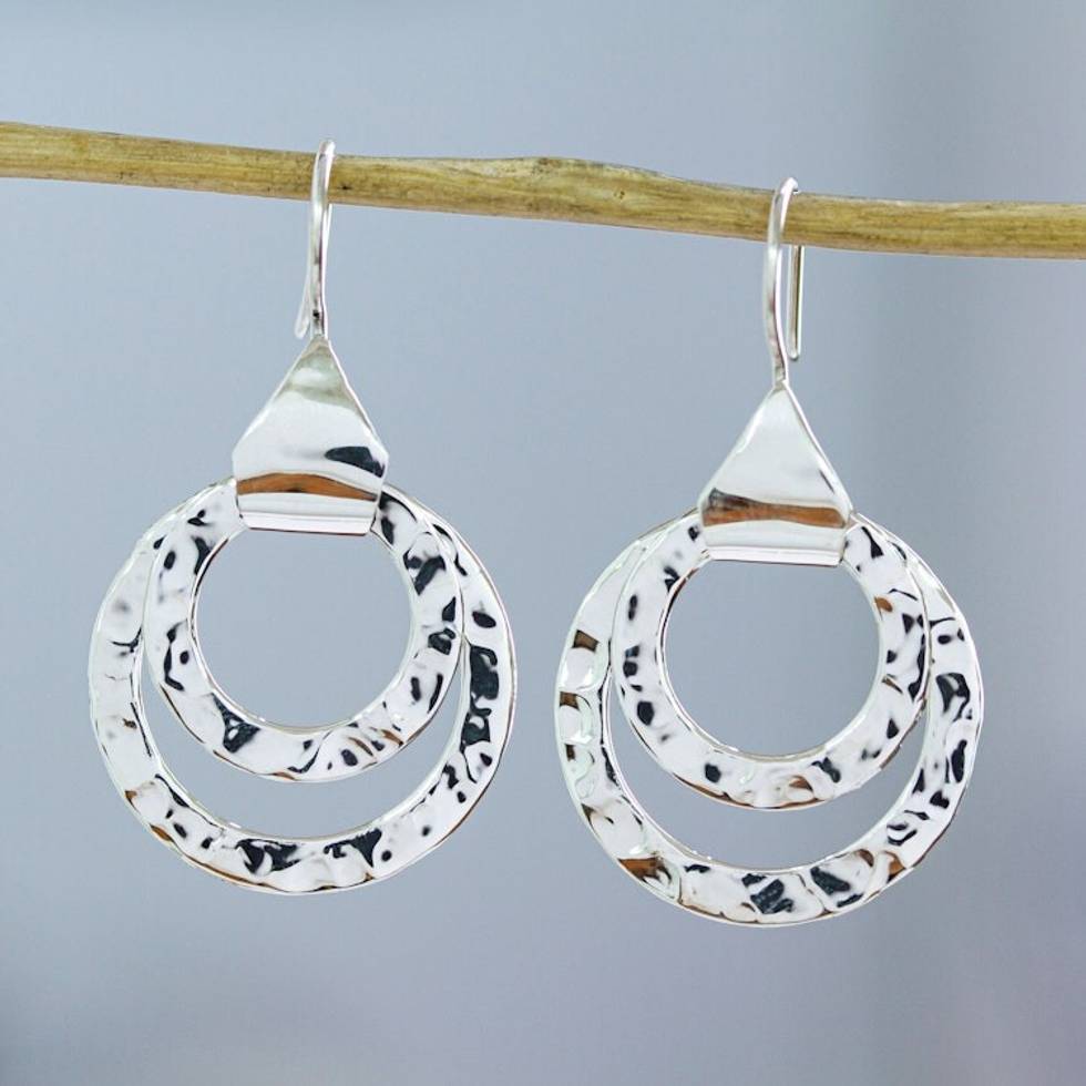 Taxco Hammered Sterling Silver Dangle Earrings from Mexico 'Abstract Rings' Item ID: 2669933073