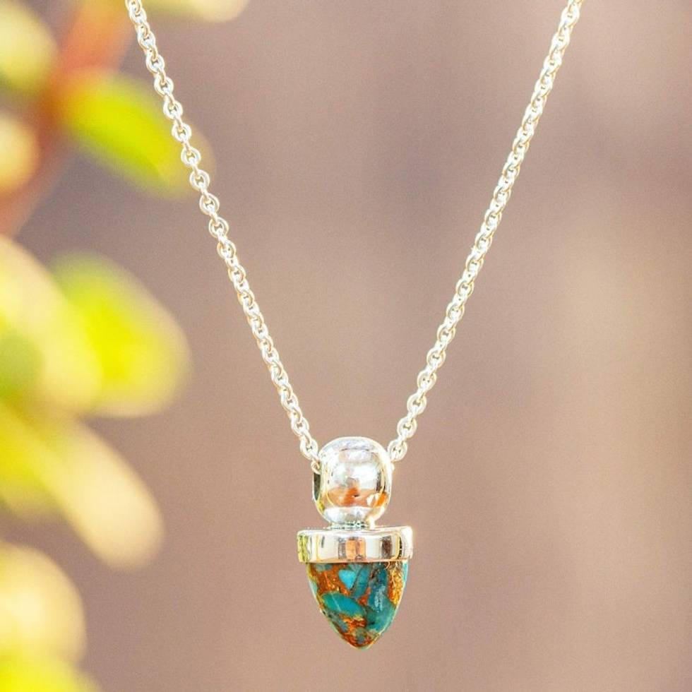 Taxco Silver Pendant Necklace with Composite Turquoise 'Earth Amulet' Item ID: 2669932181