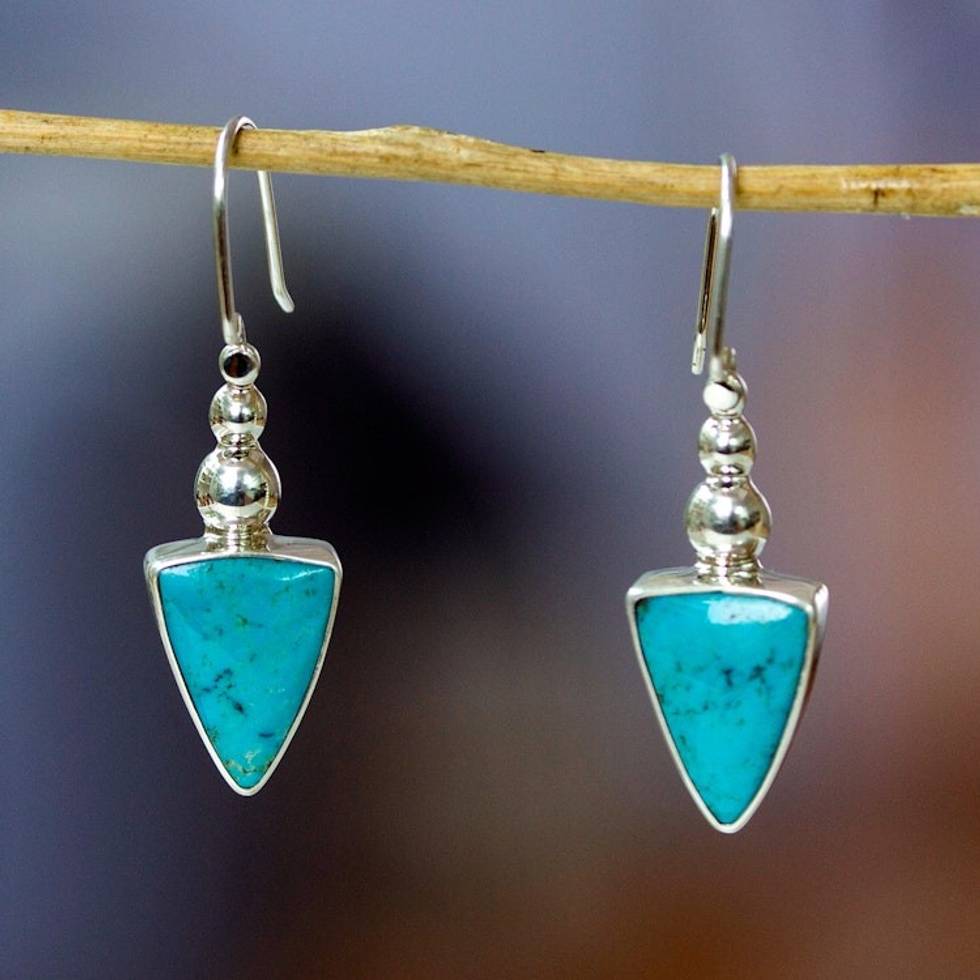 Taxco Silver Pendulum Drop Earrings with Natural Turquoise 'Dazzling Pendulum' Item ID: 2671640550