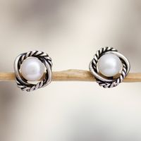 Taxco Silver Stud Earrings with Cultured Pearls 'Tangled Rope' Item ID: 2671808008