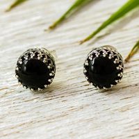 Taxco Silver Stud Earrings with Obsidian from Mexico 'Night Elegance' Item ID: 2671639623