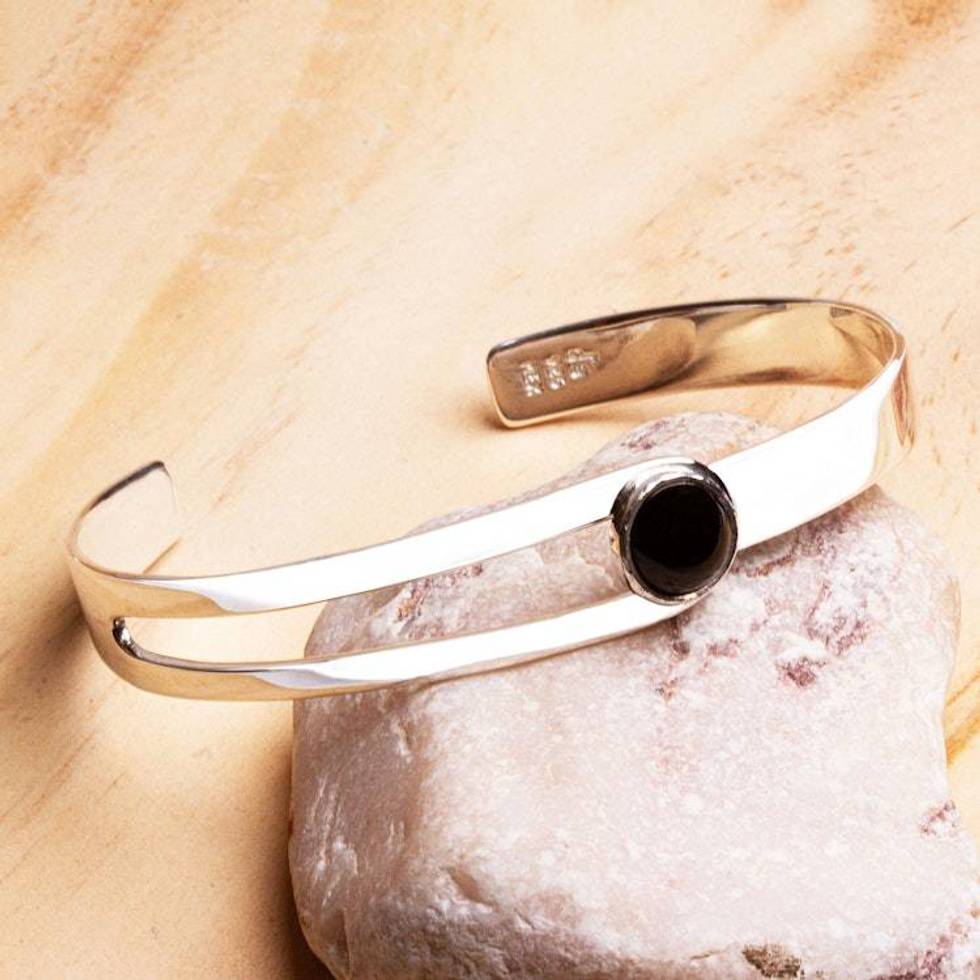 Taxco Sterling and Obsidian Bracelet 'Dark Element' Item ID: 2676646615