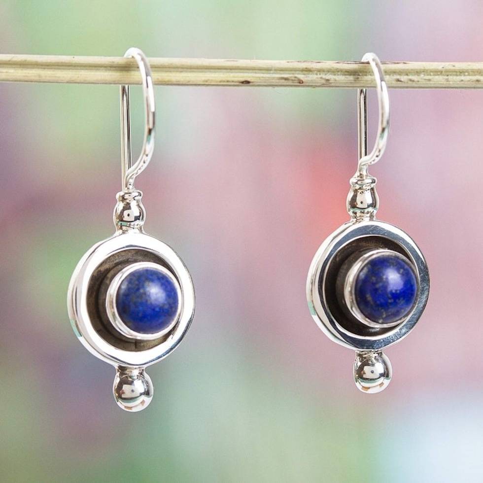 Taxco Sterling Silver and Lapis Lazuli Dangle Earrings 'Blue Lunar Shadow' Item ID: 2671808470