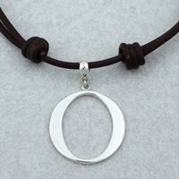 "A ring of sterling silver hangs from a length of adjustable brown leather cord. It is crafted by Mexico's Mikelo, who carries on the Taxco silver traditions of his family. Simple, yet striking, this fantastic pendant necklace is sure to be noticed wherever it goes.