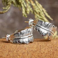 Taxco Sterling Silver Half Hoop Earrings with Leaf Motif 'Mexican Fall' Item ID: 2671808323