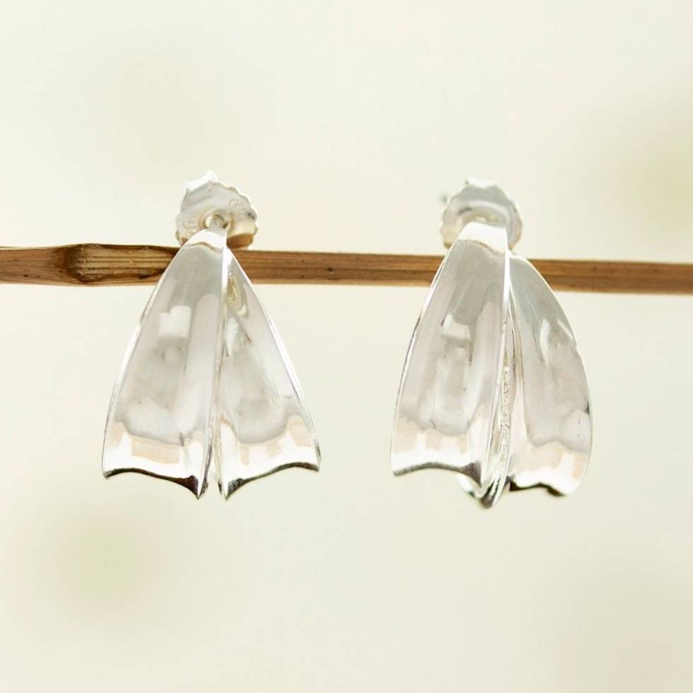 Taxco Sterling Silver Leaf-themed Half-Hoop Earrings 'Torn Leaves' Item ID: 2671807401
