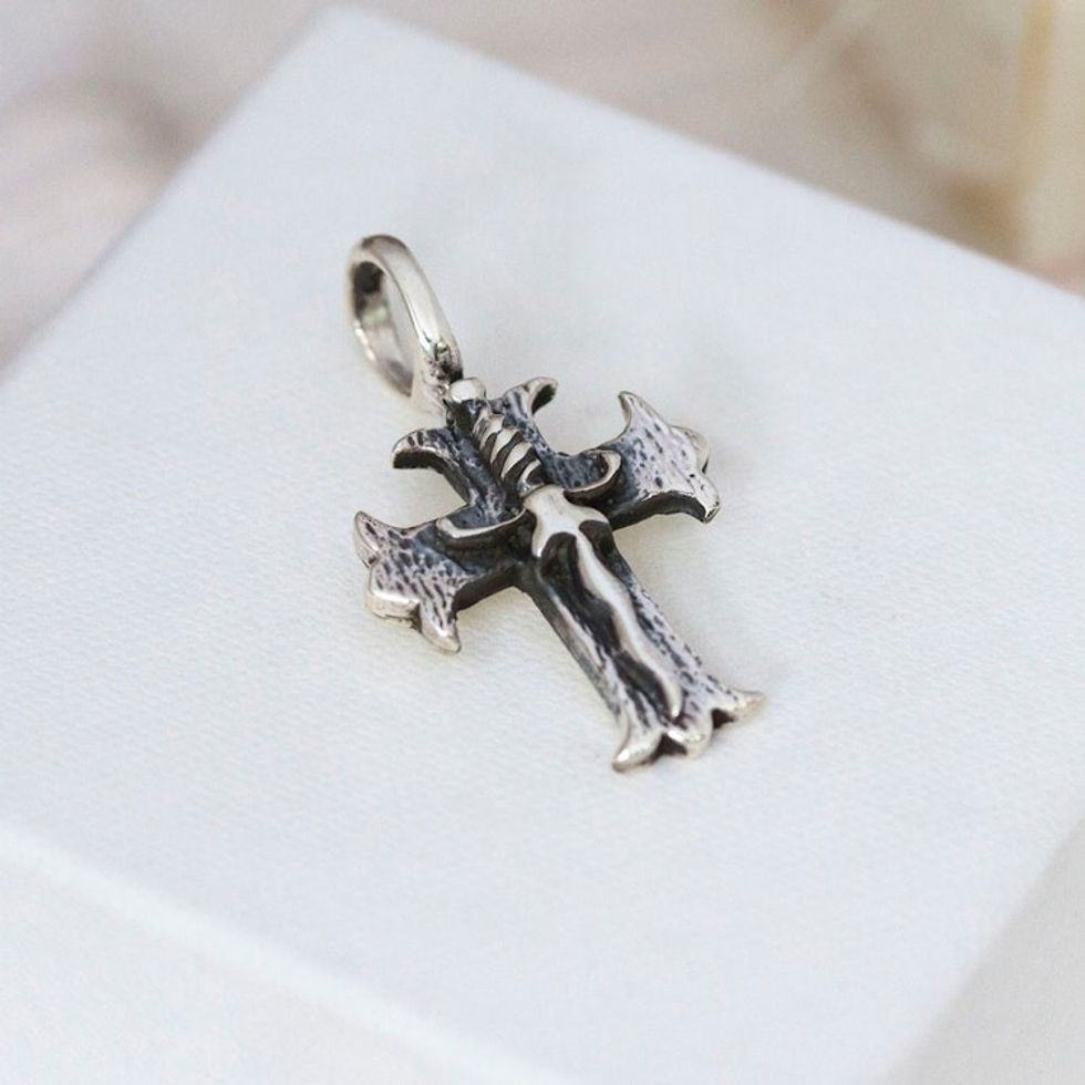 Taxco Sterling Silver Mens Cross Pendant with Sword Accent 'Sword Cross' Item ID: 2671807488