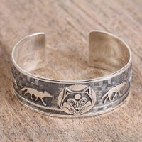 Taxco Sterling Silver Wolf Cuff Bracelet from Mexico 'Lunar Wolves' Item ID: 2671639083