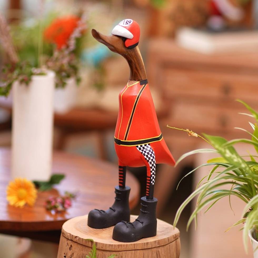 Teak Wood Duck Statuette with Racer Motif 'Racer Duck' Item ID: 2671748512