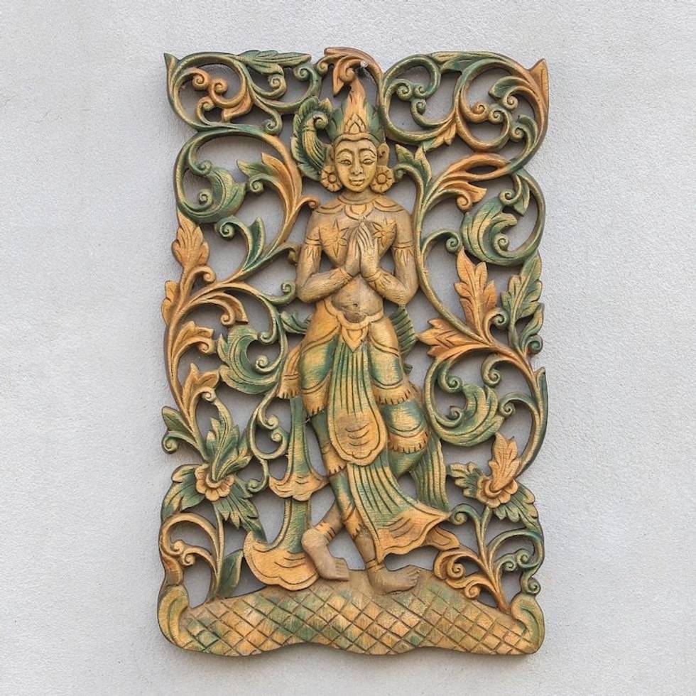 Teak Wood Relief Panel 'Angel Walk' Item ID: 2671802997
