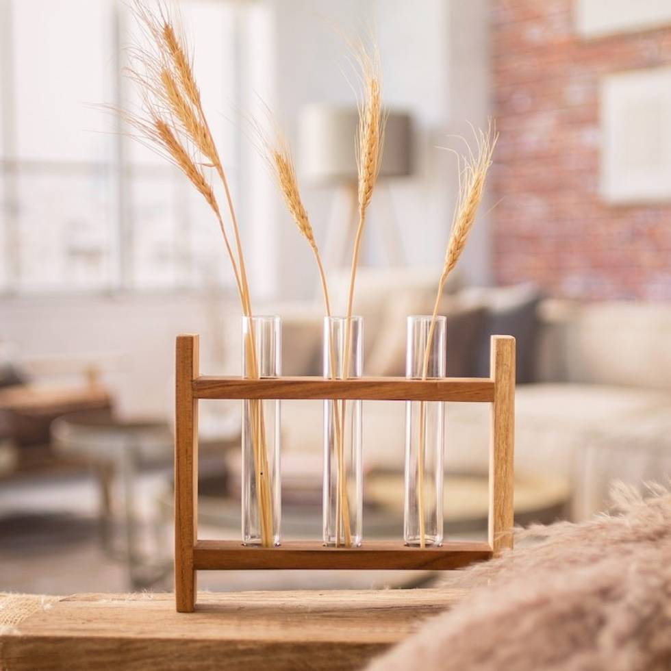 Teak Wood Stand with Glass Tube Vases from Guatemala 'Home Delight' Item ID: 2671770157