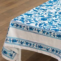 Teal and Turquoise Floral Embroidered Cotton Tablecloth 'Blooming Serenity' Item ID: 2671787880