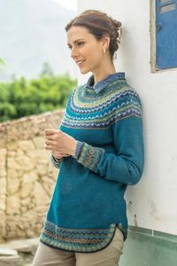 Teal Blue 100 Alpaca Pullover Patterned Peruvian Sweater 'Playful Teal' Item ID: 2670650527