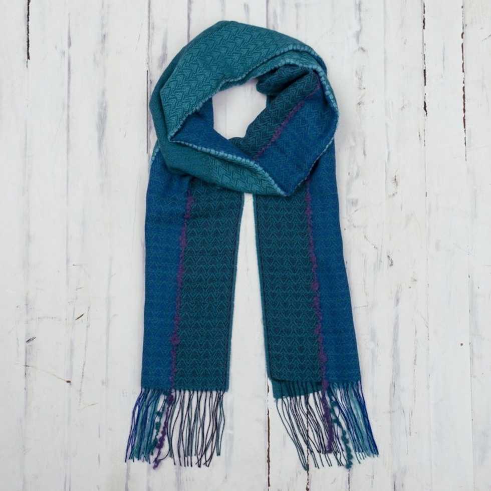 Teal Patterned Baby Alpaca Blend Scarf 'Peacock Path' Item ID: 2669904177