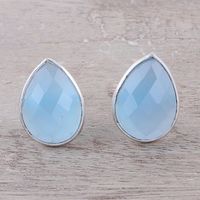 Teardrop Chalcedony Button Earrings from India 'Mystic Tears' Item ID: 2671792604