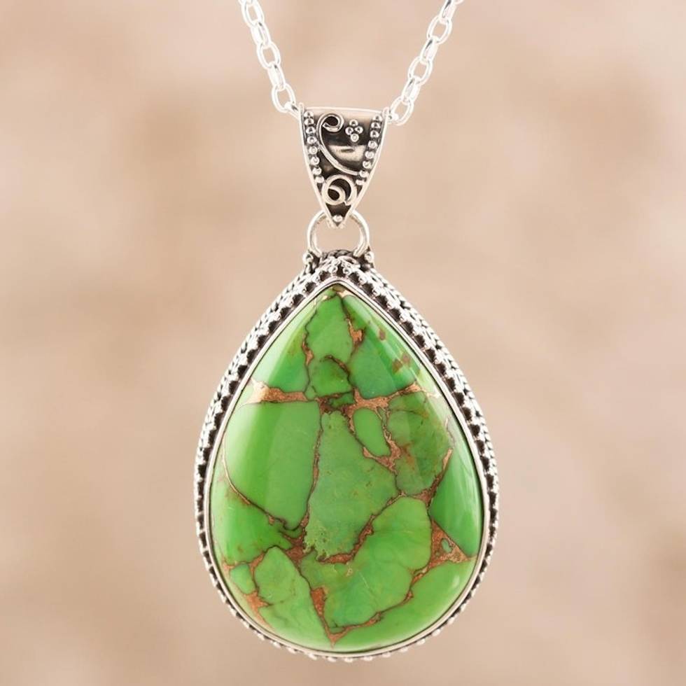 Teardrop Composite Turquoise and Sterling Silver Necklace 'Green Bliss' Item ID: 2671792483