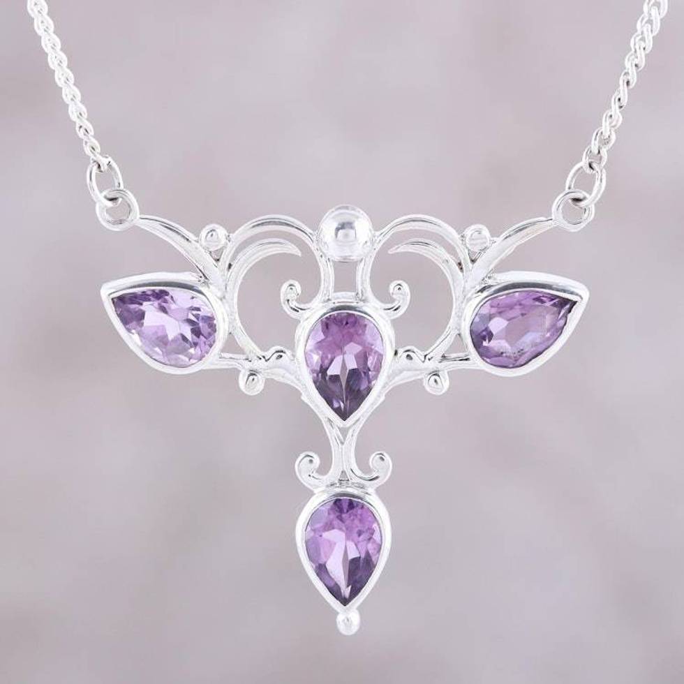 Teardrop Faceted Amethyst Sterling Silver Pendant Necklace 'Princess Bloom' Item ID: 2676664249