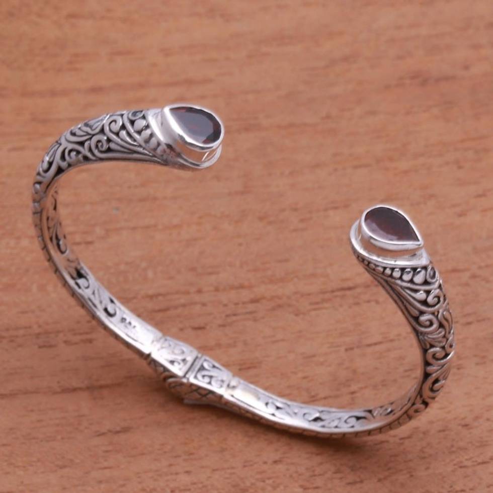 Teardrop Garnet Cuff Bracelet from Bali 'Balinese Terrace' Item ID: 2671744951