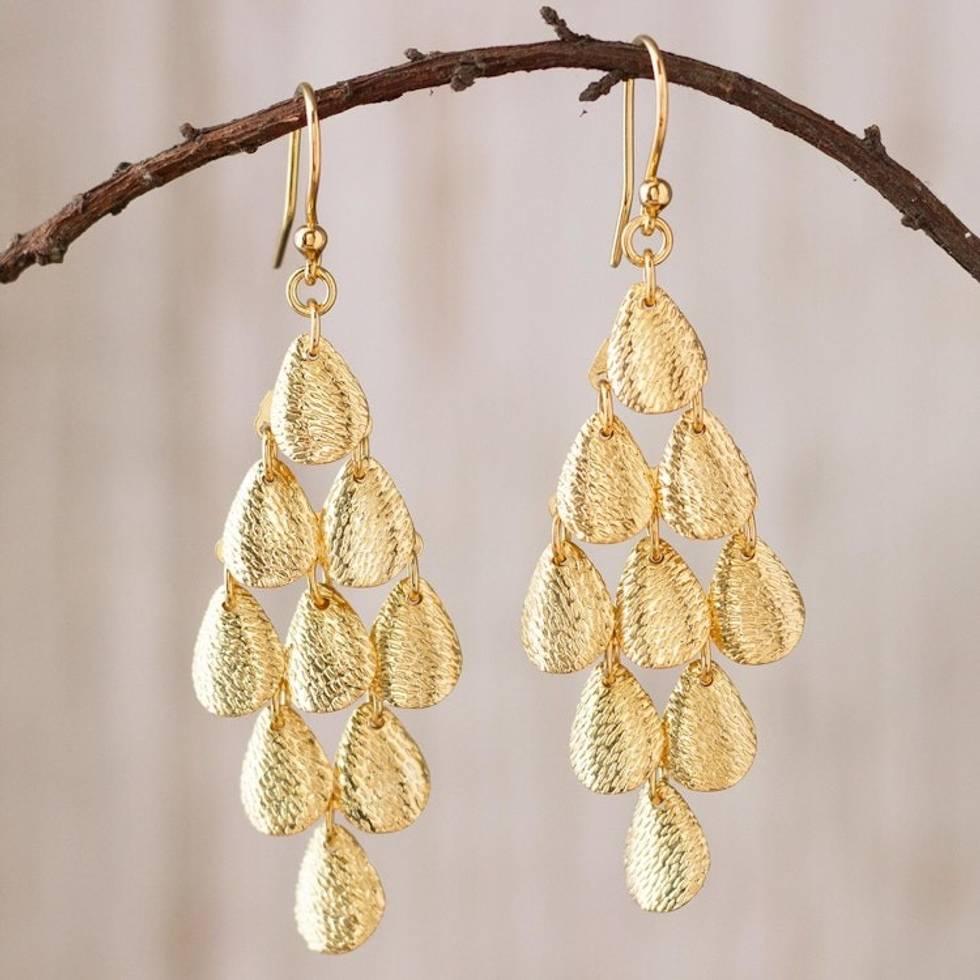 Teardrop Gold Plated Sterling Silver Dangle Earrings 'Vital Rain' Item ID: 2671402740