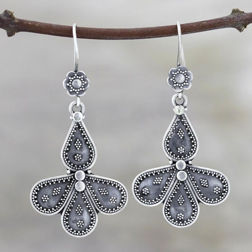 Teardrop Motif Sterling Silver Dangle Earrings from India 'Teardrop Composition' Item ID: 2671789505