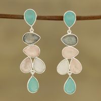 Teardrop Multi-Gemstone Dangle Earrings from India 'Colorful Teardrops' Item ID: 2671618843