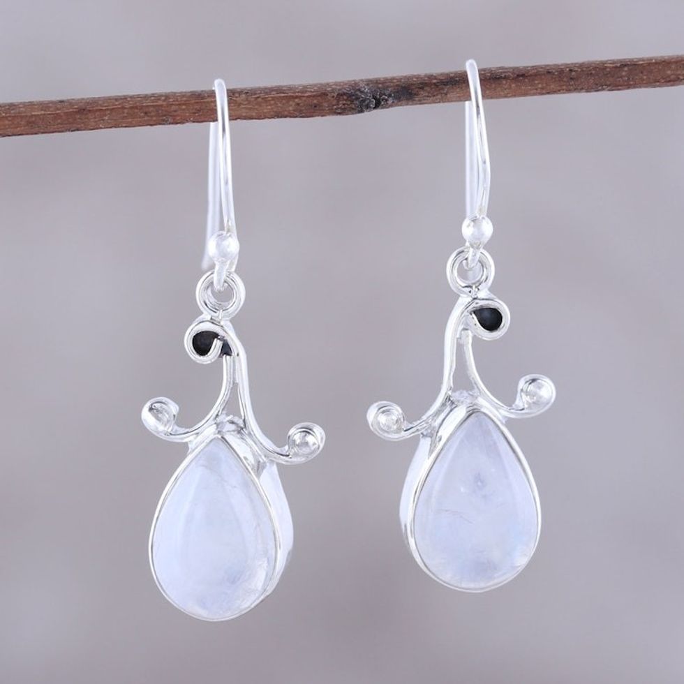 Teardrop Rainbow Moonstone Dangle Earrings from India 'Lustrous Drops' Item ID: 2671792534