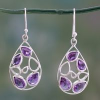 Teardrop Shaped Amethyst Dangle Earrings in Silver 'Lilac Tears' Item ID: 2671618637