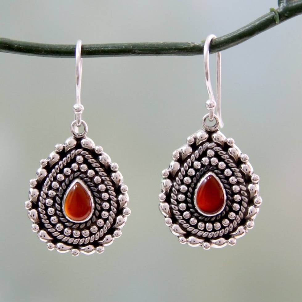 Teardrop Shaped Red Onyx and Silver Dangle Earrings 'Tears of Fire' Item ID: 2671793712