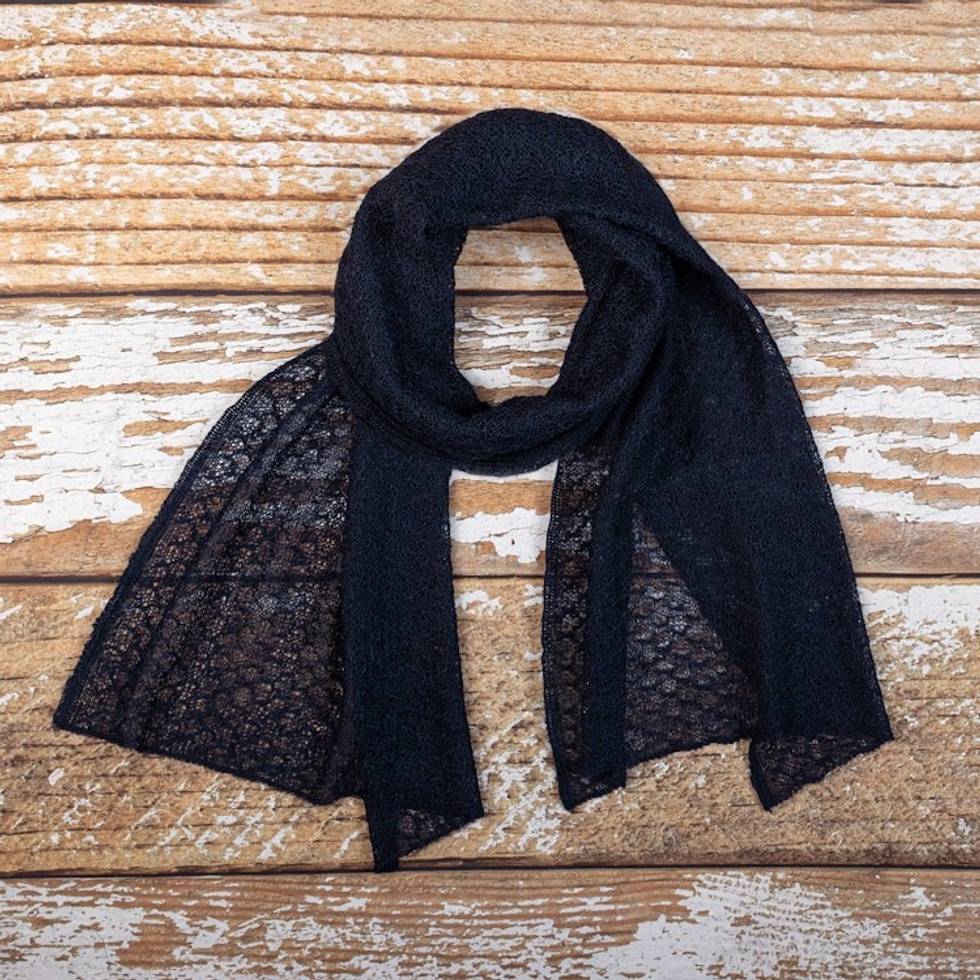 Textured 100 Baby Alpaca Scarf in Navy from Peru 'Midnight Blue Gossamer' Item ID: 2669891375