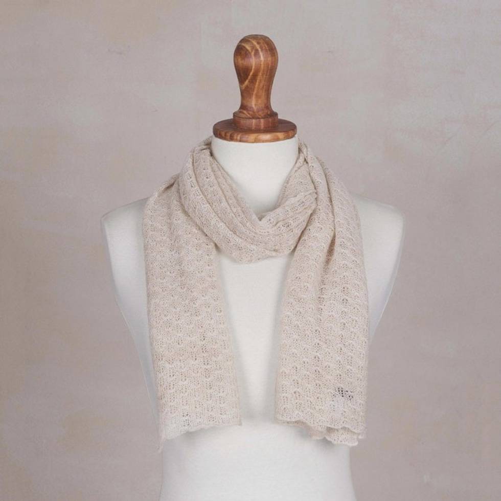 Textured 100 Baby Alpaca Wrap Scarf in Champagne from Peru 'Champagne Gossamer' Item ID: 2669904810