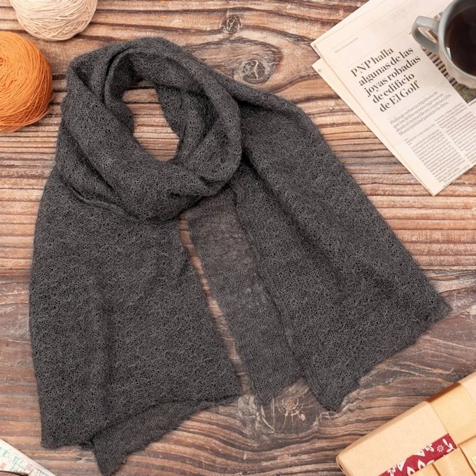 Textured 100 Baby Alpaca Wrap Scarf in Slate from Peru 'Slate Gossamer' Item ID: 2671401506