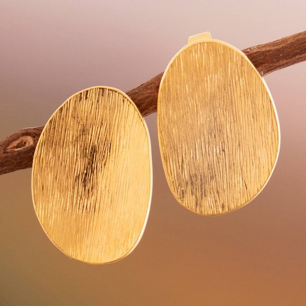 Textured Abstract 18k Gold-Plated Button Earrings from Peru 'Abstract Splendor' Item ID: 2671698086