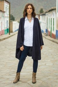 Textured Knit Alpaca Blend Ruana in Blue Shades from Peru 'Sea Blue' Item ID: 2671399717