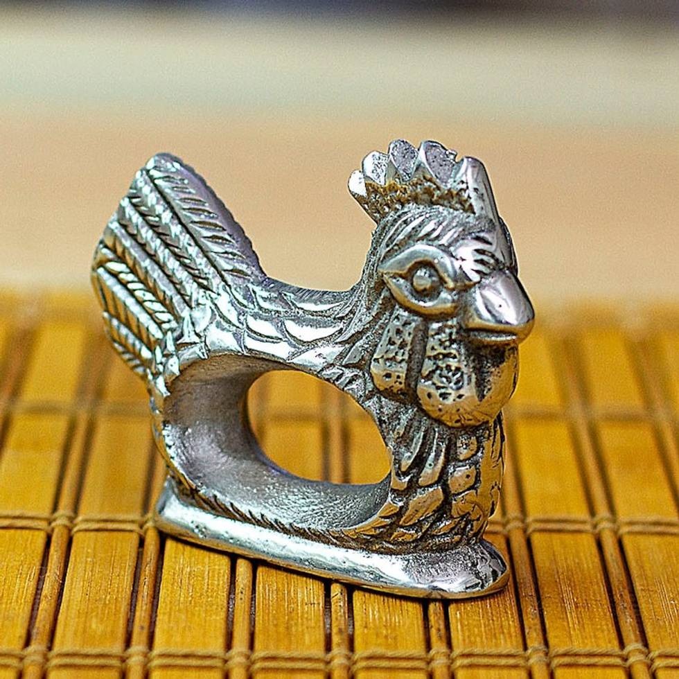 Textured Pewter Chicken Napkin Ring Handcrafted in Mexico 'Chicken Delight' Item ID: 2671807718