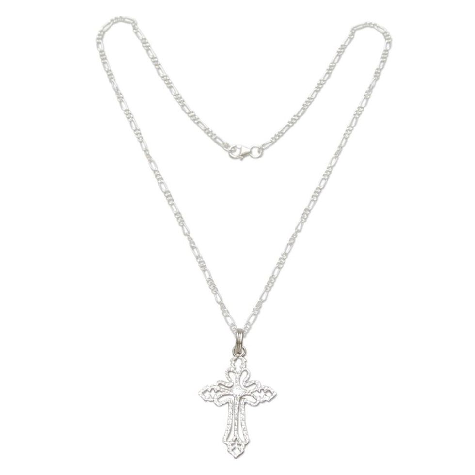 Textured Silver Cross Necklace 'Cross of Light' Item ID: 2671690838